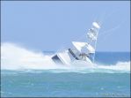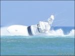 In the first photo you see the boat over-taking the breaking swell in the inlet, but he's taking the wave at a slight right angle.